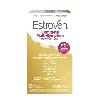 Estroven Complete is an over-the-counter (OTC), hormone-free supplement designed to be an alternative treatment to conventional hormone treatments. It’s plant-based and has been shown to reduce the symptoms of menopause in as few as 28 days.