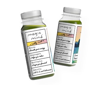 Magic Mind is a nootropic "green juice" shot packaged in a branded, eye-catching way. The goal is to provide a quick, tasty, and convenient brain boost that enhances productivity and focus.