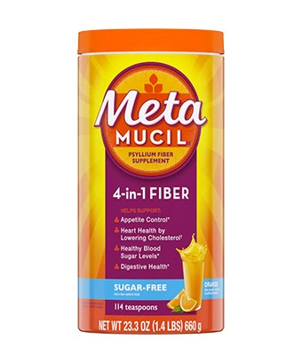 Metamucil improves digestive health and also claims to support healthy blood sugar levels, lower cholesterol levels, and suppress appetite.