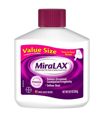 MiraLAX is available in various bottle sizes as a loose powder or packaged in single-serving sachets.