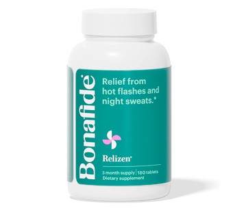 Relizen is an OTC, plant-based supplement designed to reduce hot flashes and night sweats in menopausal women. It is manufactured by Bonafide, a women’s wellness brand. Several versions of this product have been used in Europe for over 15 years.
